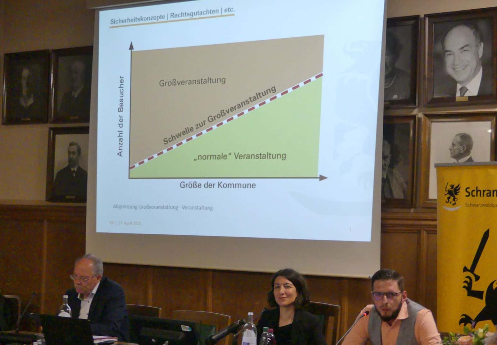 Ralf Rückert (Freie Liste) kritisierte die allgemeine „Klageritis“. Er fand, bei kommerziellen Veranstaltungen mit mehr als 5000 Personen sei ganz klar, dass es ein Sicherheitskonzept braucht. Bei kleineren festen wie dem Oktoberfest der Stadtmusik oder dem Schilteckfest wäre es nicht angemessen. „Sonst sterben die Vereine“, fürchtet er. Dominik Dieterle (CDU) fand ebenfalls, man könne sich nicht gegen alles absichern, es gebe immer ein Restrisiko.