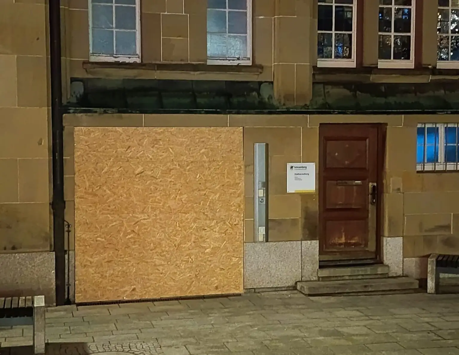 Für ordentlich Wirbel in den sozialen Medien hat der Crash in die hintere Rathaustür gesorgt. Seit am Montag ein kleiner Lieferwagen dort hinein gedonnert ist, ist die Türe mit einer großen Sperrholzplatte verrammelt. Nun macht man sich Sorgen um den Brandschutz und die Fluchtwege.