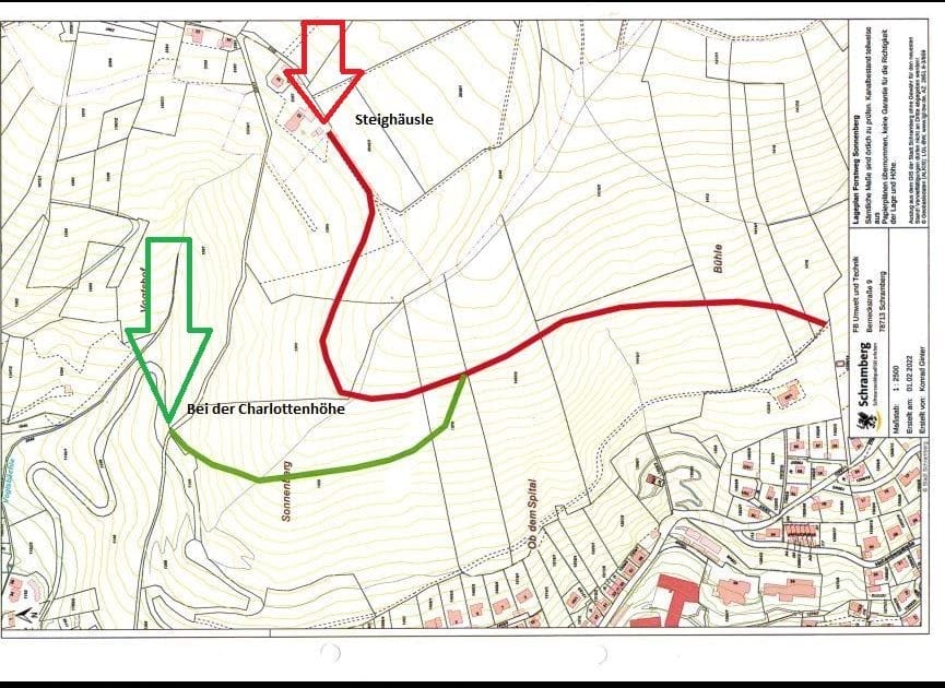 Im Bereich Sonnenberg-Steighäusle entsteht ein neuer Forstweg. Weil dafür Bäume gefällt werden müssen, werden die Wanderwege im Bereich Sonnenberg-Steighäusle vom 23. März bis einschließlich 6. April gesperrt.