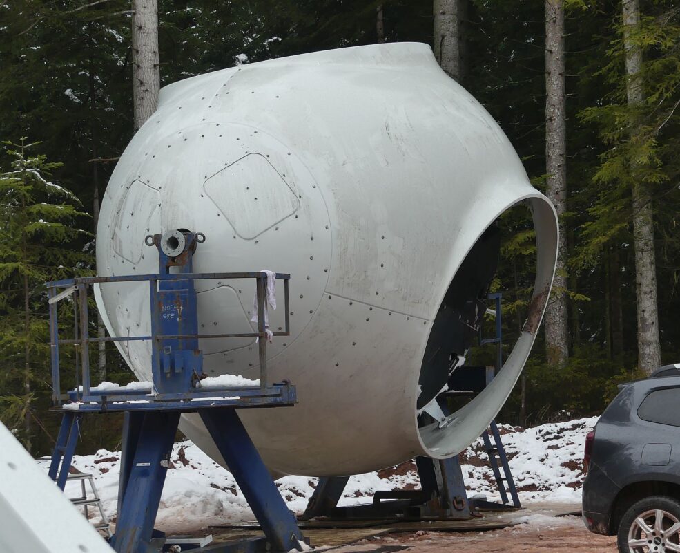 Beim Vor-Ort-Termin waren die Bauleute gerade dabei, die drei Schalen für das untere Turmteil zusammenzusetzen und zu verschrauben. Bei dem nasskalten Wetter kein leichter Job. „Erst werden die Turmteile aufeinandergesetzt und verschraubt“, erläutert Huber den Aufbauvorgang, „dann kommt das leere Maschinenhaus drauf.“