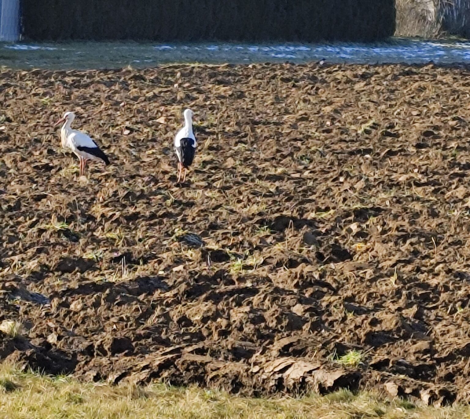 In Waldmössingen hat Andrea Heim gestern zwei Winterstörche gesichtet. Die beiden waren auf einem frisch gepflügten Feld auf der Jagd. Wie der Storchenbeauftragte Hartmut Polet anhand der Fotos gesehen hat, sind sie ohne Ringe