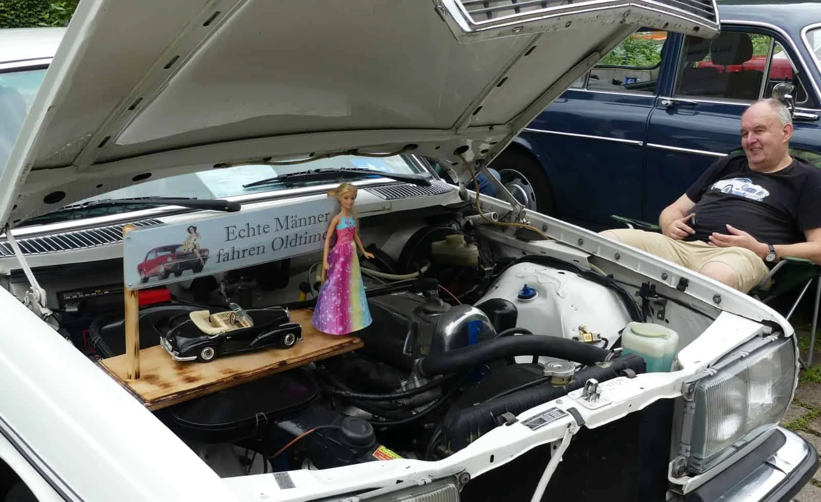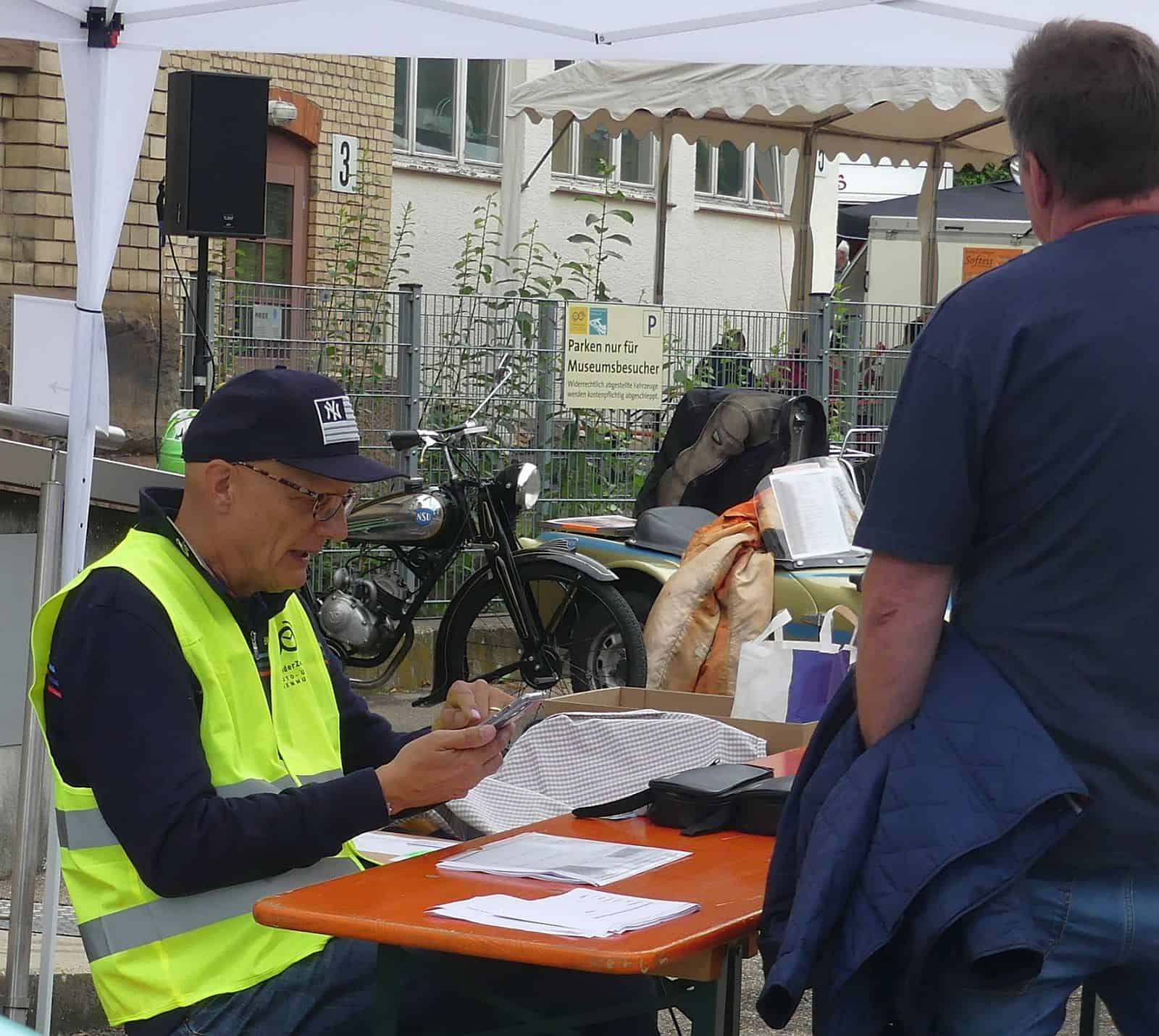 Organisiert hatten Anneliese Müller und Corinna Hermann, unterstützt von zahlreichen ehrenamtlichen Helferinnen und Helfern, dieses inzwischen traditionelle Oldtimer-Treffen des Auto- und Uhrenmuseums Erfinderzeiten. Unter den Gästen war auch der Leihgeber des Museums, Martin Sauter, er hatte einen 70 Jahre alten Mercedes dabei.