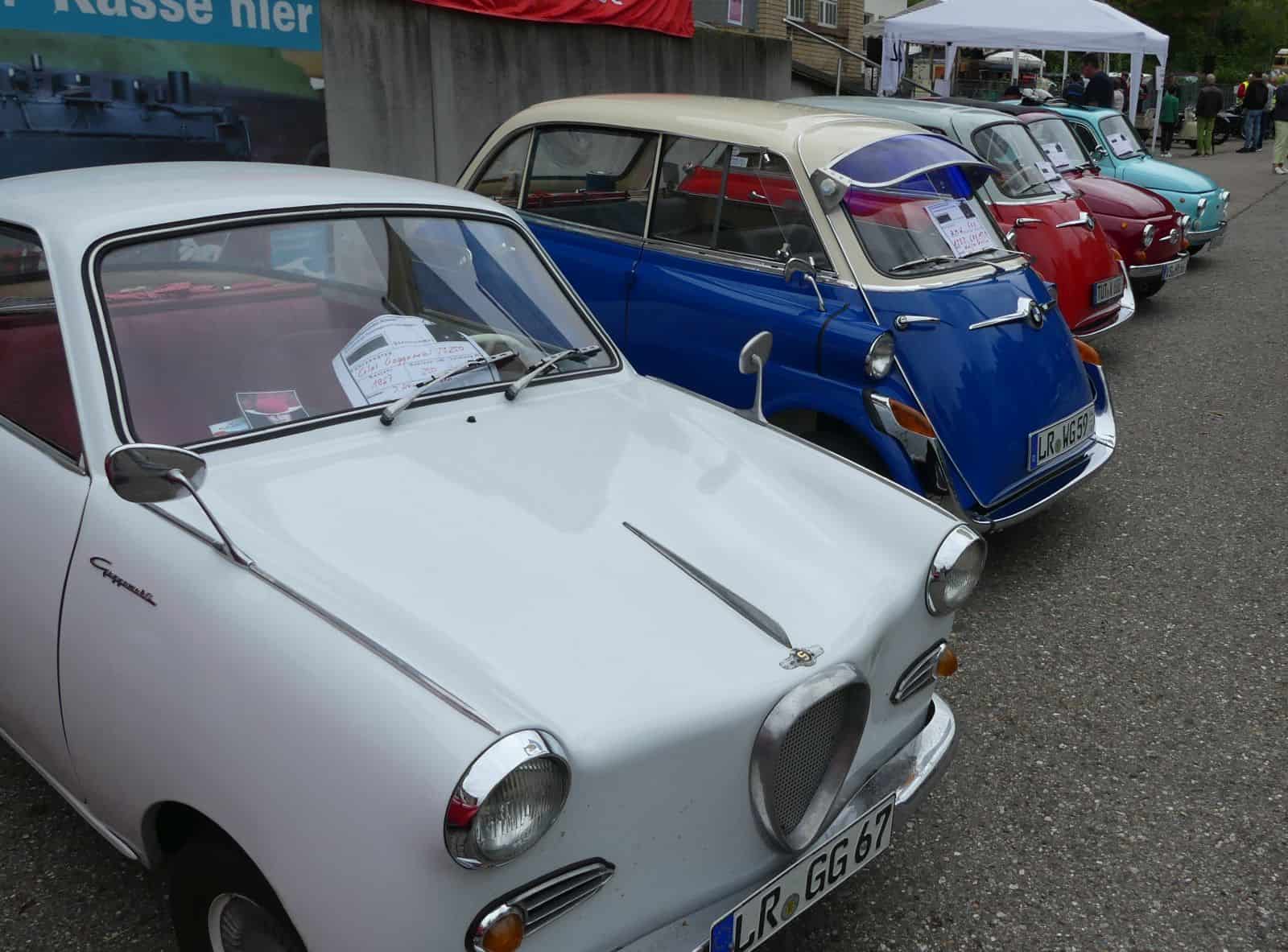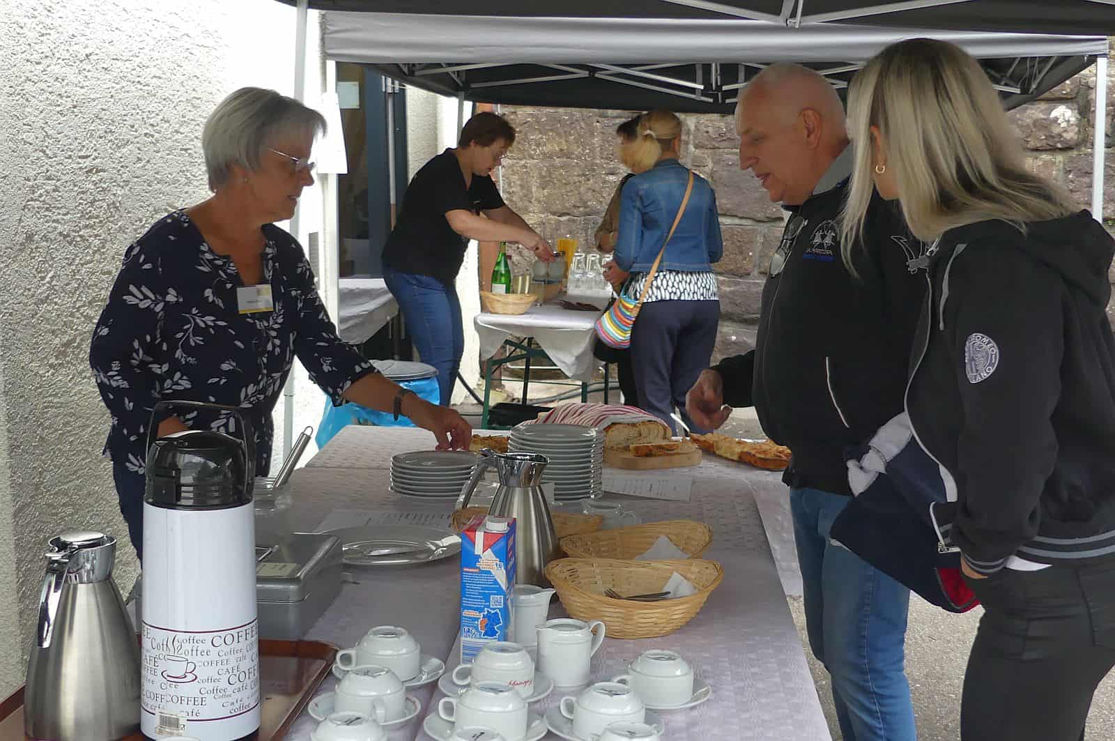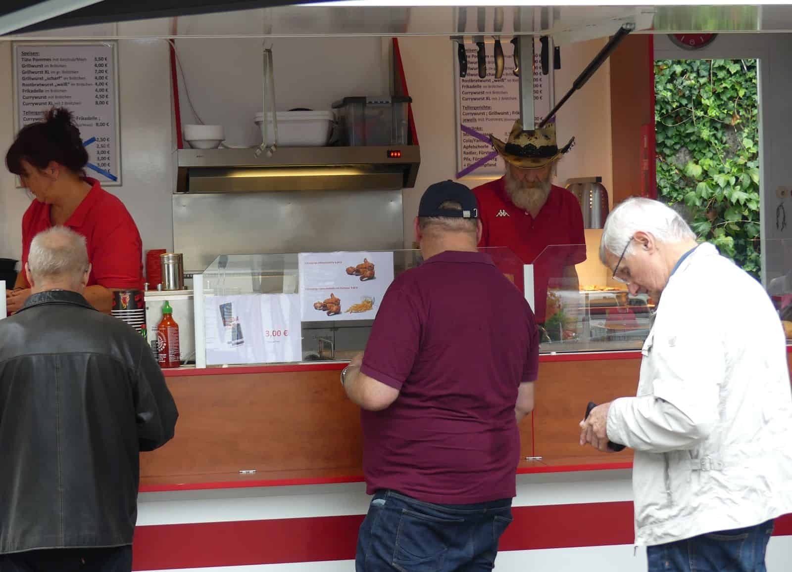 Auch das Wetter hielt bis fast vor Schluss, erst dann begann der Regen. Doch da hatten sich die Besucherinnen und Besucher bereits sattgesehen beziehungsweise sattgegessen bei Kaffee und Kuchen vom Förderverein Auto- und Uhrenmuseum oder eine roten Wurst von Hettich.