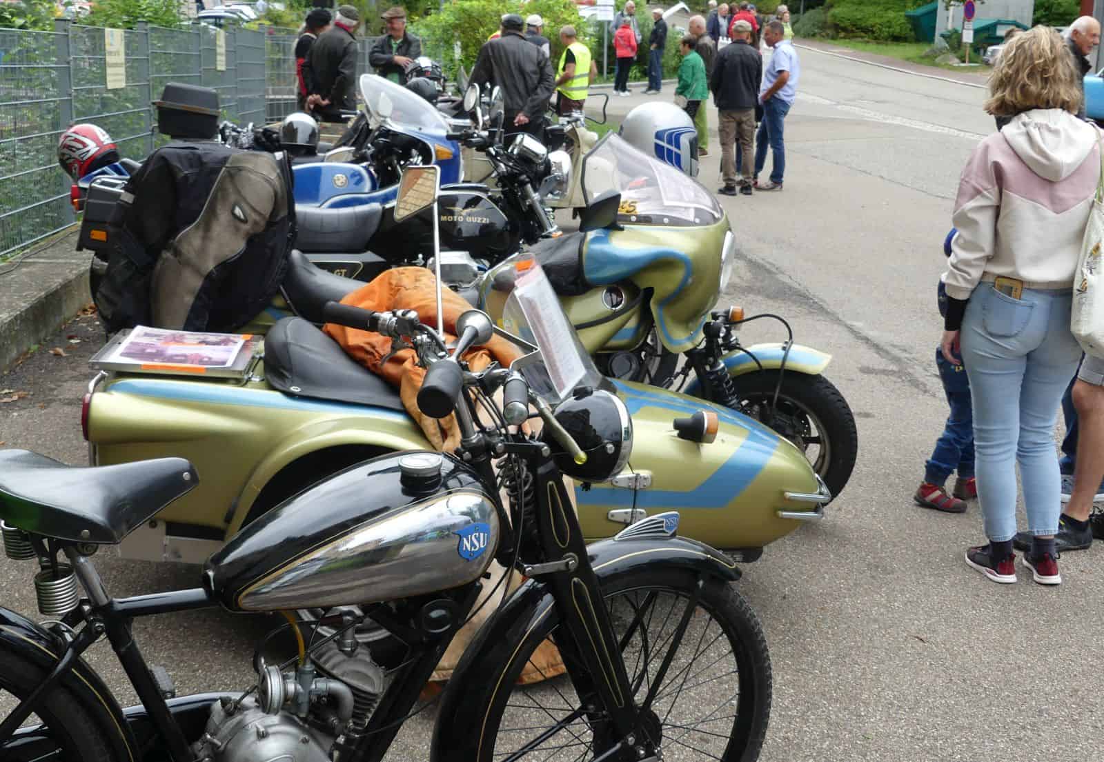 Bei zwei Rundfahrten durchs Gelände führten jeweils etwa 20 Fahrerinnen und Fahrer ihre besonderen Oldtimer vor und schwärmten von PS und Hubraum. Zum Vergnügen der Zuschauerinnen und Zuschauer ließen sie ihre Motoren aufheulen und bretterten blaue Wolken ausstoßend ein paar Meter die Straße hinauf.