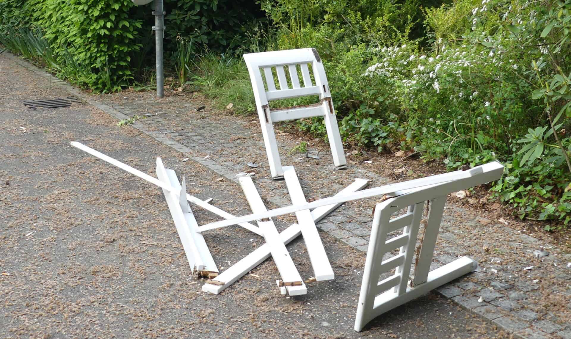 Unterdessen haben Mitarbeiter des Bauhof damit begonnen, die kaputten Bänke und Blumentröge einzusammeln und die gröbsten Schäden zu beseitigen.