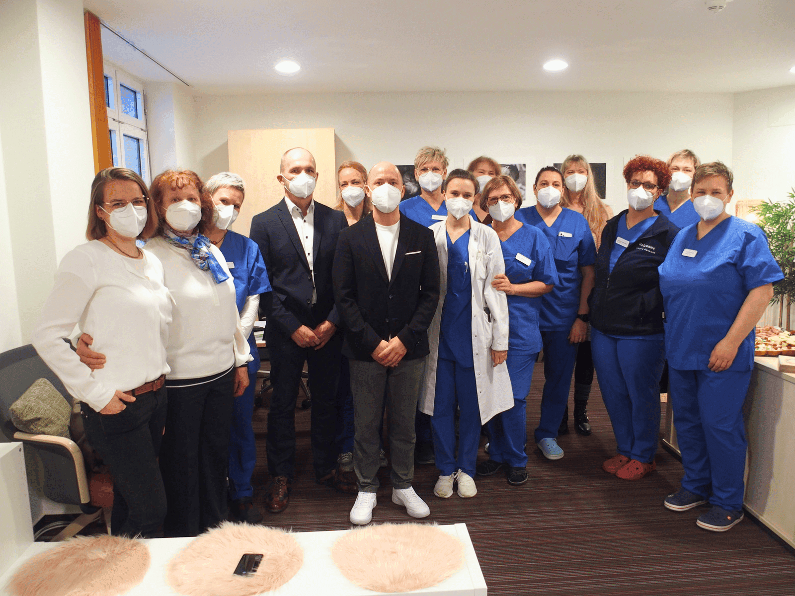 Im Anschluss bot das Team der Geburtshilfe den Gästen eine Kreißsaal-Führung an, bevor alle bei Häppchen und Getränken in den Austausch miteinander gingen.