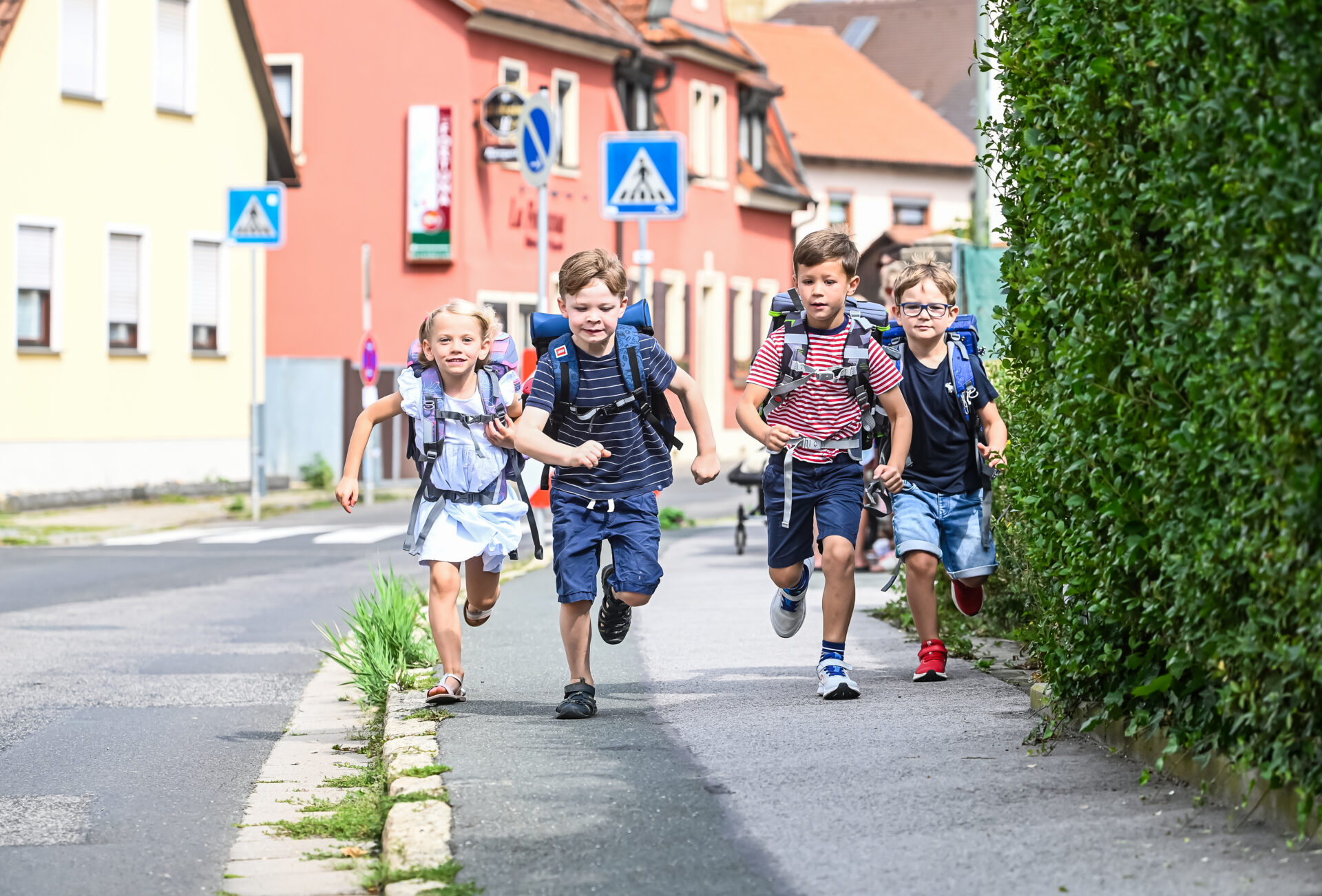 - Straßenseite beachten: Kinder sollten immer auf der vom Verkehr abgewandten Seite laufen.