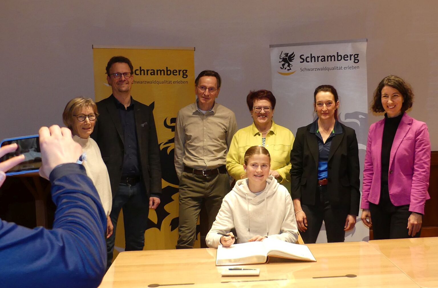 Die Stadt Schramberg, der Stadtverband für Sport Schramberg und die SG Schramberg haben eine junge Frau geehrt, die eigentlich eine Villingerin ist. Julia Ehrle ist im vergangenen September U 20-Welmeisterin im Berglauf geworden. Weil sie in der Laufgruppe von Peter Kapitza der SG Schramberg trainiert und für die SG auch startet, bekam sie einen eigenen Empfang im Schramberger Rathaus.
