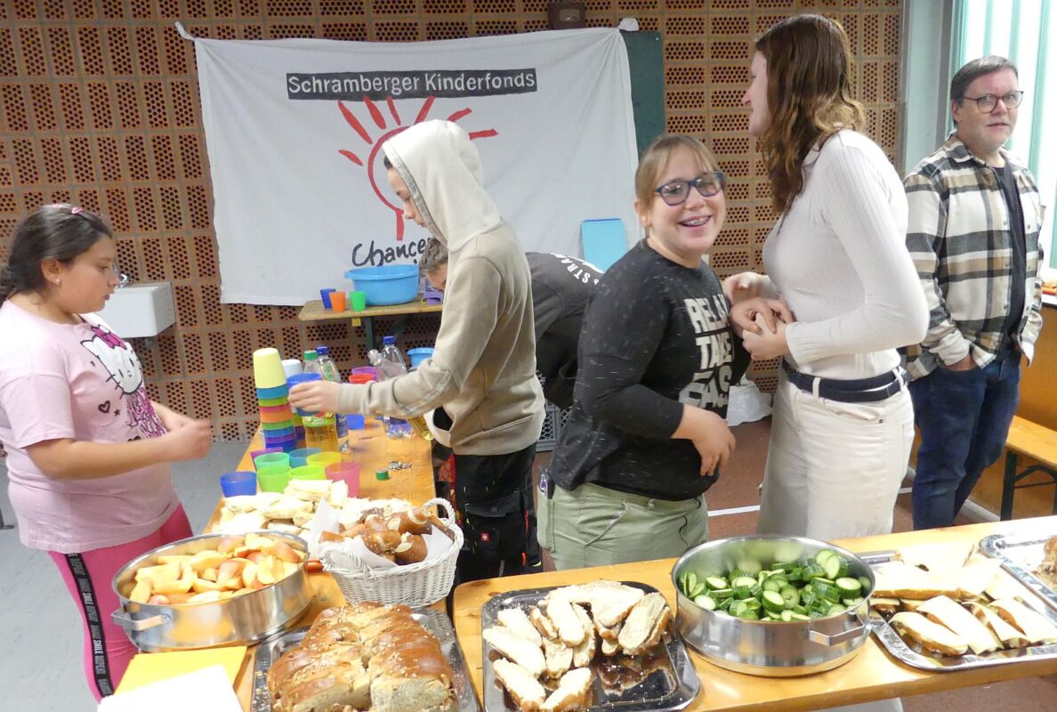 Die Schülerinnen und Schüler der Peter-Meyer-Schule haben für die Kinder auf der Empore eine Snackbar eingerichtet mit Laugenstangen, Obst, Gemüsesticks, Hefezopf und Saft. Die Veranstaltung richtete sich an Kinder im Grundschulalter und die Maxi-Kinder aus den Schramberger Kindergärten.