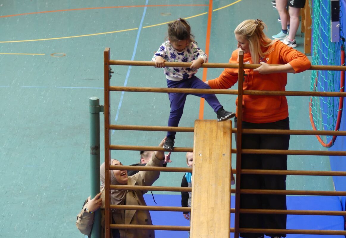 Von 11 Uhr bis 16 Uhr war die Halle ein Treffpunkt für Kinder und Familien, um einen Tag mit Spiel und Sport zu verbringen. Die gesamte Halle war eine „Bewegungsbaustelle“ mit einem Mitmach-Parcours. Auf der Tribüne der Halle bot der Kinderfonds ein kreatives Bastelangeboten.