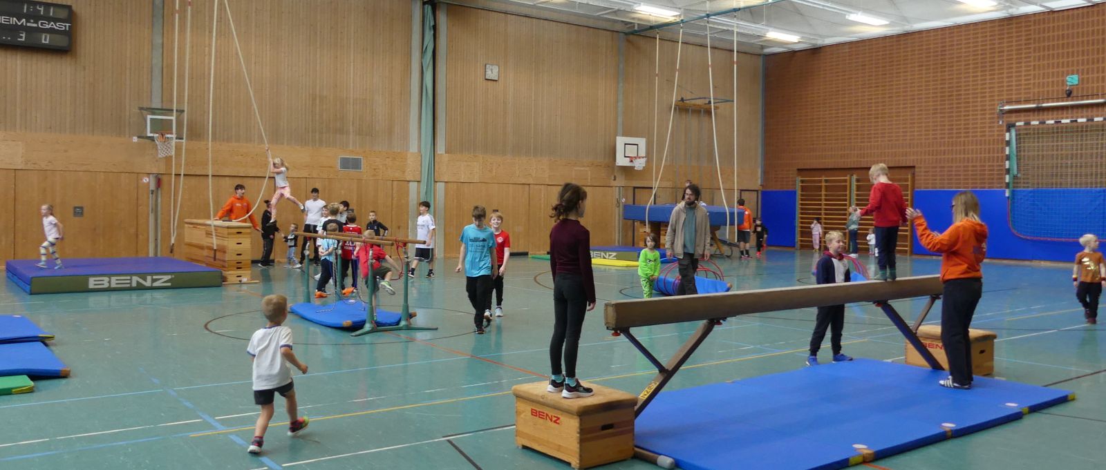 Schramberg. Laute Musik schallt aus der Box, während sich in der Halle die Kinder an den verschiedensten Sportgeräten austoben. An Seilen hin und her schwingen, Purzelbäume auf dicken Matten schlagen oder über den Schwebebalken balancieren.