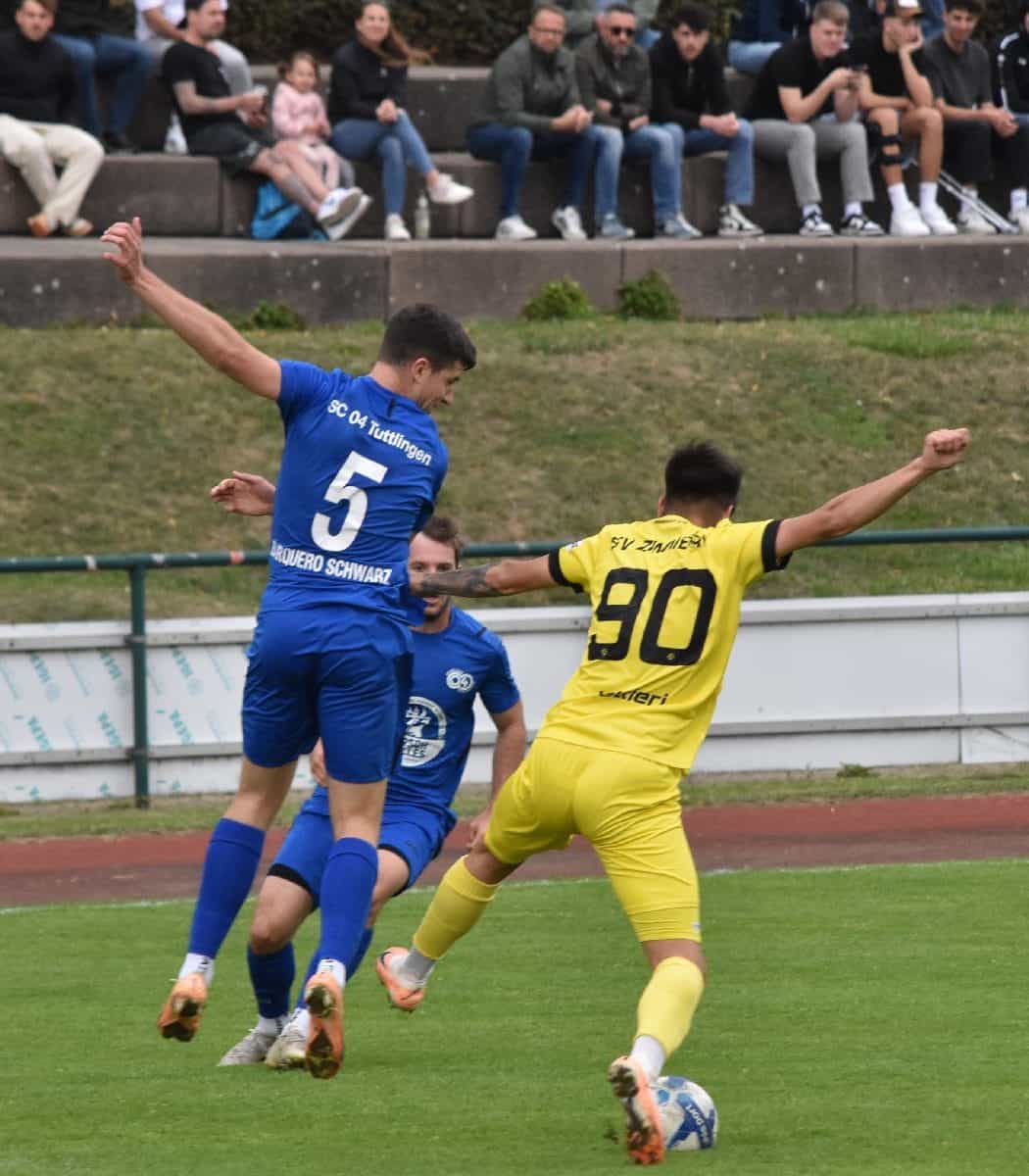 Dumm gelaufen: Der SV Zimmern verlor vor etwa 130 Zuschauern sein Liga-Spiel gegen den Bezirksrivalen SC 04 Tuttlingen durch einen Treffer des erst zehn Minuten zuvor eingewechselten Gabriel-Razvan Tomulescu mit 0:1 in der Nachspielzeit. Über die gesamte Spielzeit lieferten sich die beiden Teams ein ansehnliches Spiel mit vielen Angriffen und wenig Mittelfeldgeplänkel. Die Abwehrreichen standen allerdings meist fest, so dass Torchancen selten blieben. Nur wenige dicke Möglichkeiten zum Treffer gab es – und wenn mal ein Ball gefährlich aufs Eckige kam, dann waren die Tormänner auf beiden Seiten auf dem Posten.