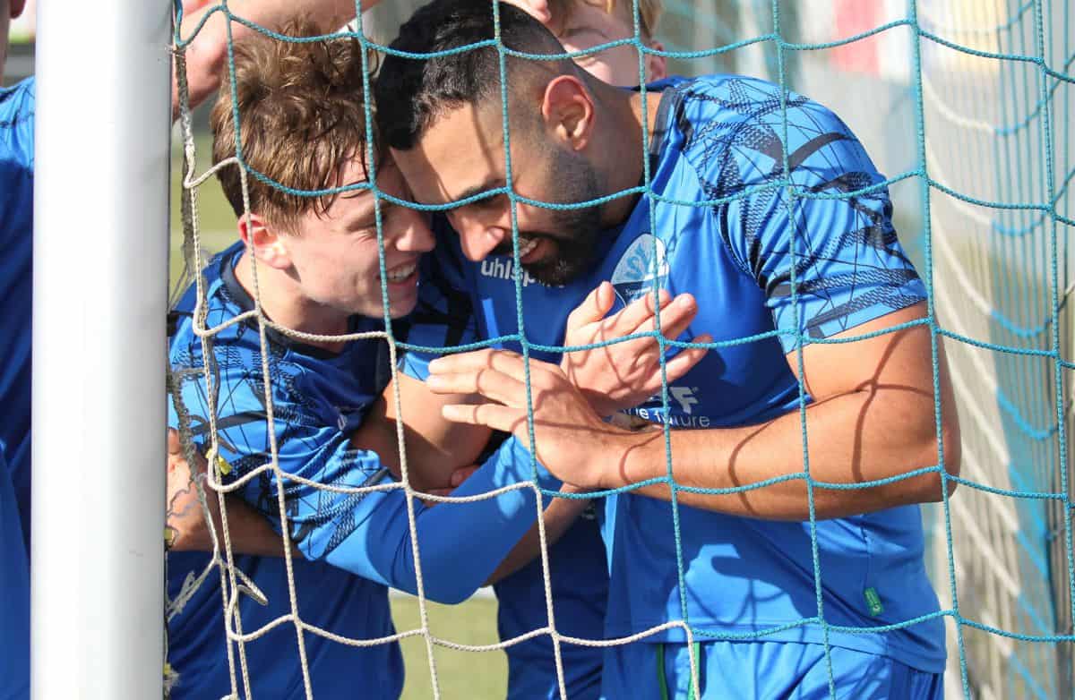 170 Zuschauer – oder zumindest der Teil, dessen Herz für die Blau-Weißen schlägt – bejubelten in der 18. Minute den Treffer von Harut Arutunjan zum 1:0. Zuvor hatte Frieder Mauch nach einen gewonnenen Laufduell von Rechtsaußen in den Fünf-Meter-Raum geflankt. Arutunjan nahm an und schob das Leder in die Maschen. Bis zur Pause fiel kein weiteres Tor, sodass es schließlich mit unverändertem Ergebnis in die Kabinen ging.