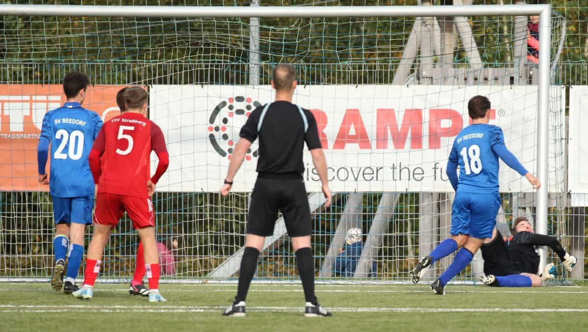 Die Konzentration des SVS ließ in der Folgezeit etwas nach, und der Gegner kam so zu guten, jedoch erfolglosen Gegenangriffen. Das Heft hatte sich gedreht – doch die Abwehrreihen der Blau-Weißen hielten dem Druck Stand. In der Nachspielzeit wurde es nochmals spannend, als Strassberg am rechten Strafraum einen Freistoß zugesprochen bekam. Seedorfs Torhüter Moritz Karcher war jedoch gut positioniert und entschärfte den direkten Schuss. Als der Schlusspfiff ertönte, war es genau ein Tor, das den Unterschied zwischen den Teams ausmachte.
