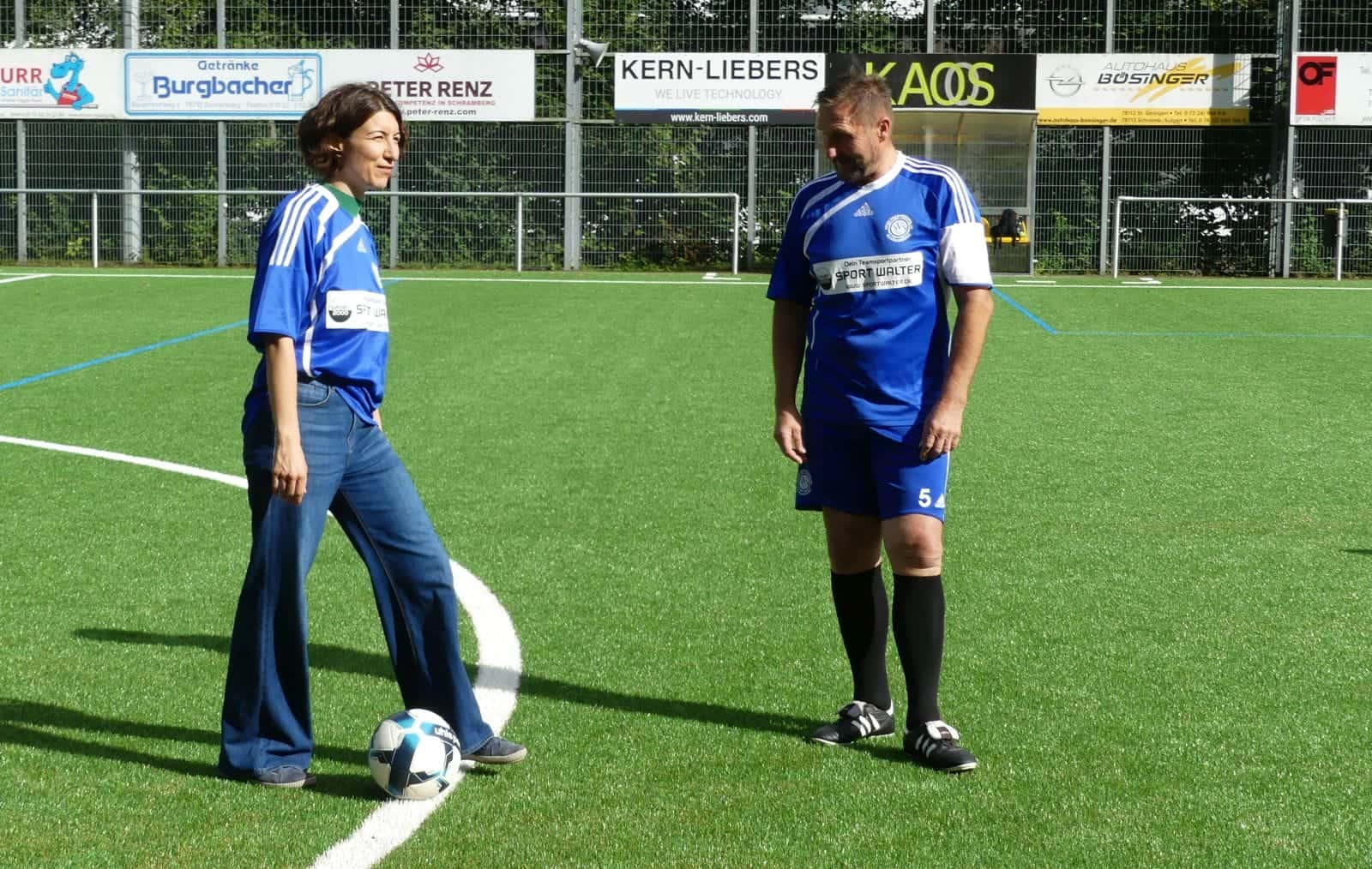 Mit einem Gaudispiel der „Allstars“ gegen eine Auswahl aus Stadträten, Rathausmitarbeitern und Vorständen vom Stadtverband für Sport eröffneten die Schramberger Fußballer am Freitagnachmittag den neuen Kunstrasenplatz. Den Anstoß auf dem Bernecksportplatz übernahm Oberbürgermeisterin Dorothee Eisenlohr.