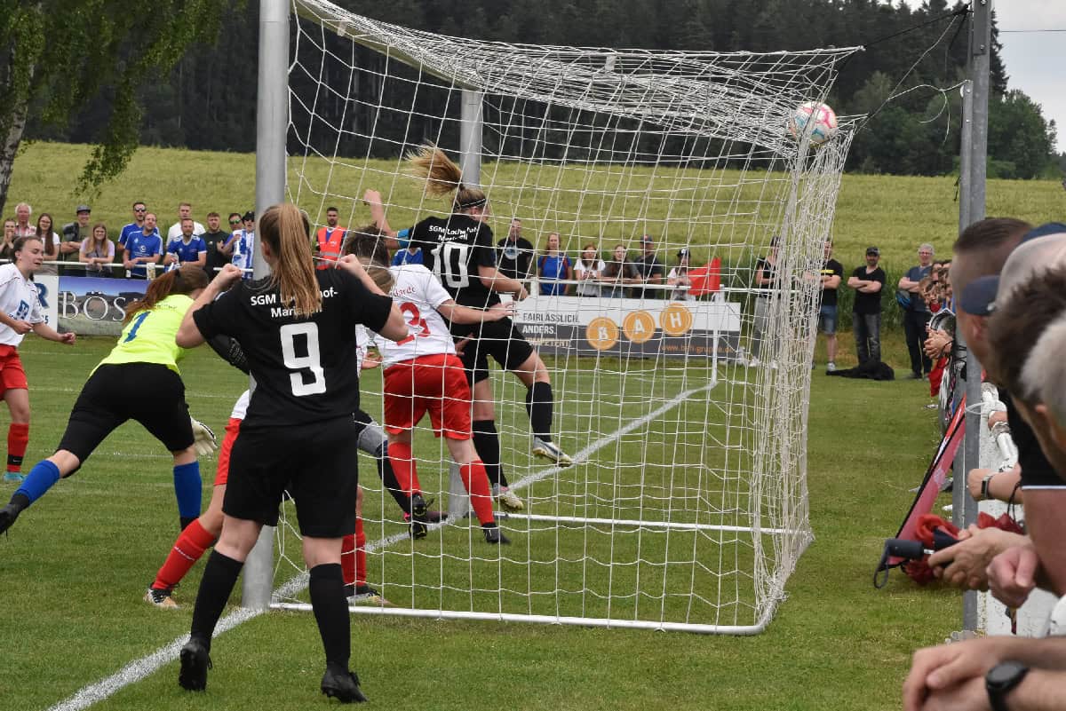 Das Double ist perfekt: Die Damen der SG Locherhof/Mariazell haben heute das Finale des Bezirkspokals mit 3:0 (3:0) gegen die SG Sulgen/Hardt gewonnen. Und das vor einer beeindruckenden Kulisse – schon beim Anpfiff waren 400 Zuschauer auf dem Bösinger Sportplatz.