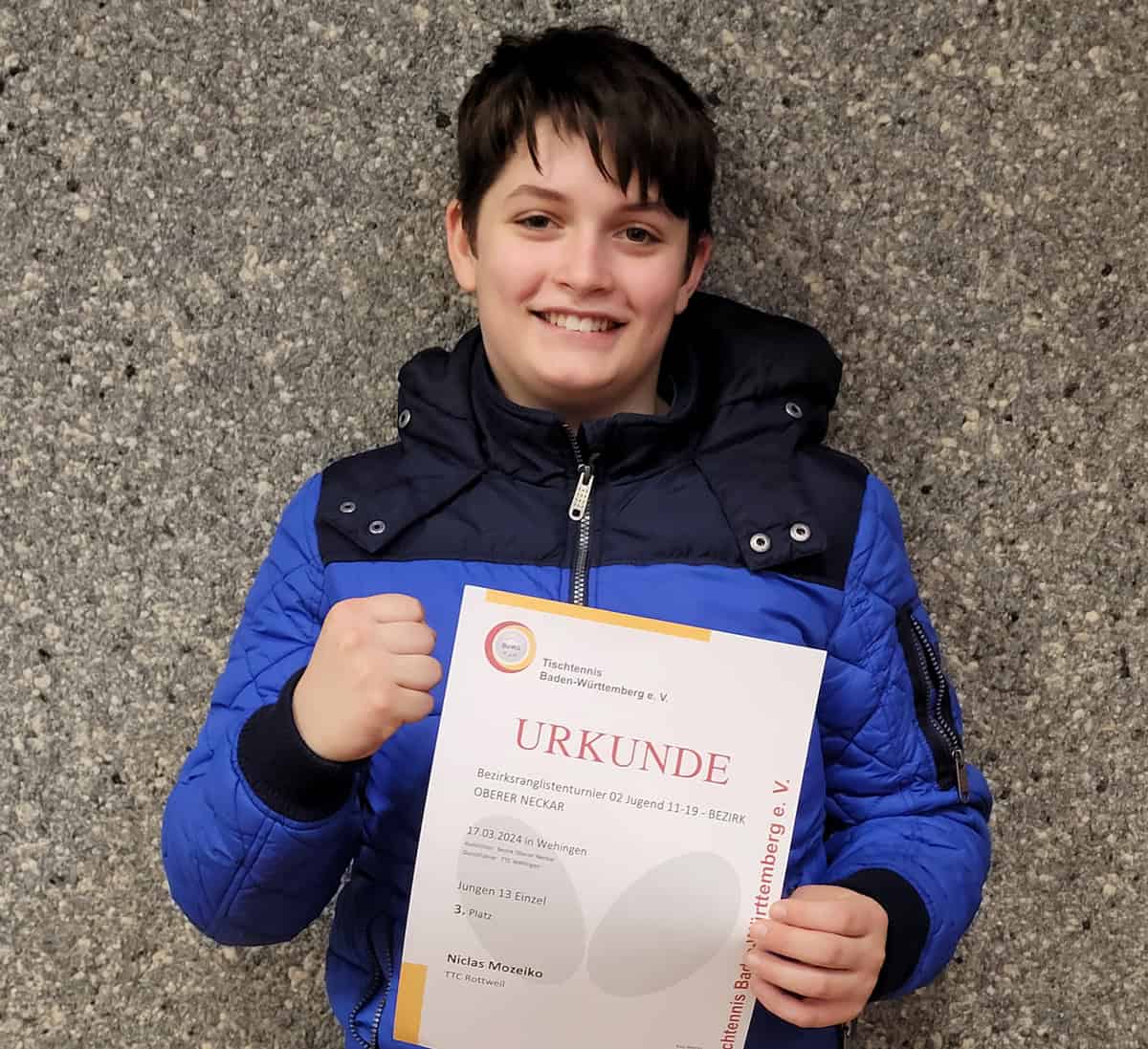 Bei den Jungen 13 verkauften sich die Jüngsten bei ihrer Premiere äußerst achtbar. Marie Flemming, Samuel Jandaghi sowie Lukas und Marcel Campergue reüssierten hierbei jeweils mit einer 4:3-Bilanz im Mittelfeld. Niclas Mozeiko wiederum erreichte dank eines 5:2-Ergebnisses sogar den starken dritten Platz und darf – in Einberechnung seines vierten Platzes der Januar-Rangliste – nun mittels eines Nachrückplatzes auf die Teilnahme an der BaWü-Qualifikation Anfang April in Böblingen hoffen. Sarah Engesser, Marie Flemming und Ronny Ritter sind hierfür bereits fix qualifiziert.