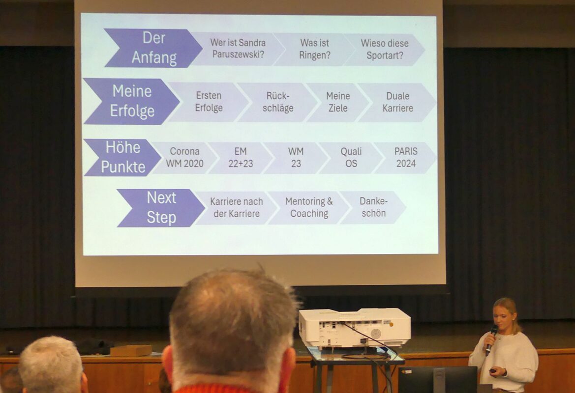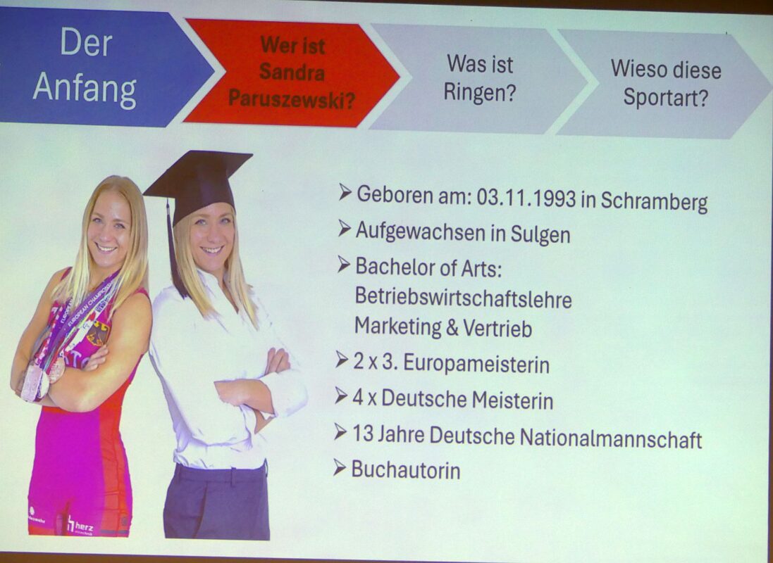 Schramberg. In kurzen Zügen skizzierte Paruszewski ihren Aufstieg zur Olympiateilnahme in Paris. Geboren 1993, ist sie in Sulgen aufgewachsen. Recht spät, mit 14 oder 15 Jahren, begann sie mit dem Ringen. Der Sport habe sie begeistert, weil man auf der Matte „ganz auf sich allein gestellt ist“. Ringen sei vielseitig, es brauche Kraft, Ausdauer mentale Stärke. Jeder Kampf sei anders, man müsse sich auf jede Gegnerin neu einstellen.