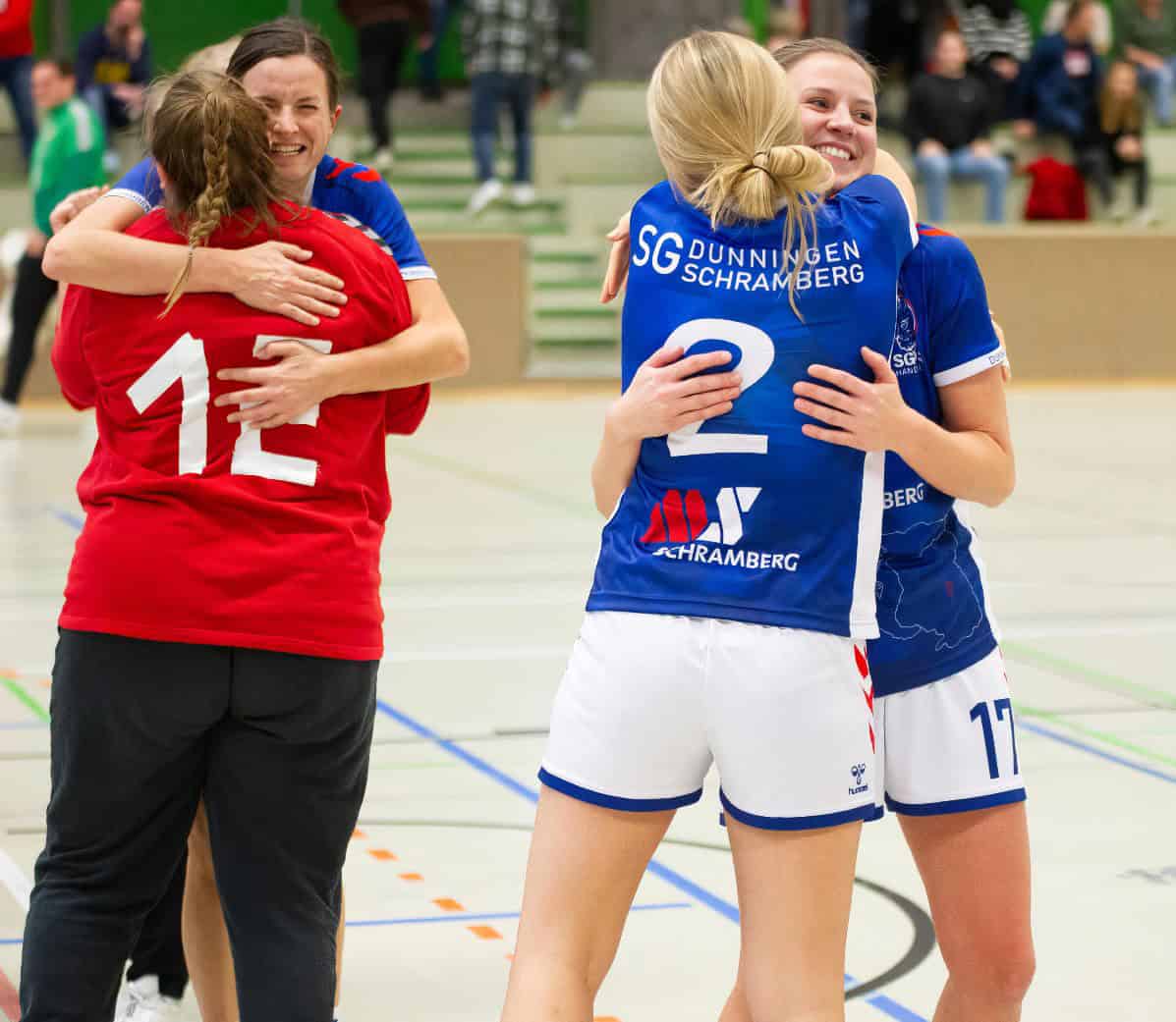 SG Dunningen/Schramberg – TV Spaichingen 29:18 (13:9). Die Gastgeberinnen starteten souverän, mit einer starken Abwehrleistung und einer kurzzeitigen Führung von 6:2 in das Spiel. Schwierigkeiten in der Absprache und technische Fehler sorgten für eine Steigerung der Gegner und zum kürzesten Abstand des Spiels (10:8, 24.Minute). Durch eine enorme Steigerung sowohl in der Abwehr als auch im Angriff und einer sehr guten Torhüterleistung auf Seiten der Gastgeber wurde der Abstand insoweit vergrößert, sodass eine Elf-Tore Führung herausgespielt wurde. Somit blieben die zwei Punkte zum Jahreswechsel in heimischer Halle. Beste Werferinnen, Heim: Marina Häsler 8/6, Gast: Lena Kupferschmid 5. Spielfilm: 6:2; 10:8; 14:10; 18:10; 21:11; 26:15.