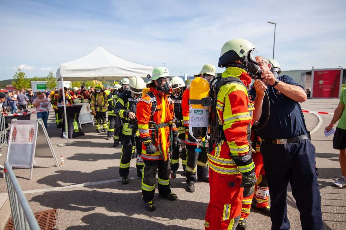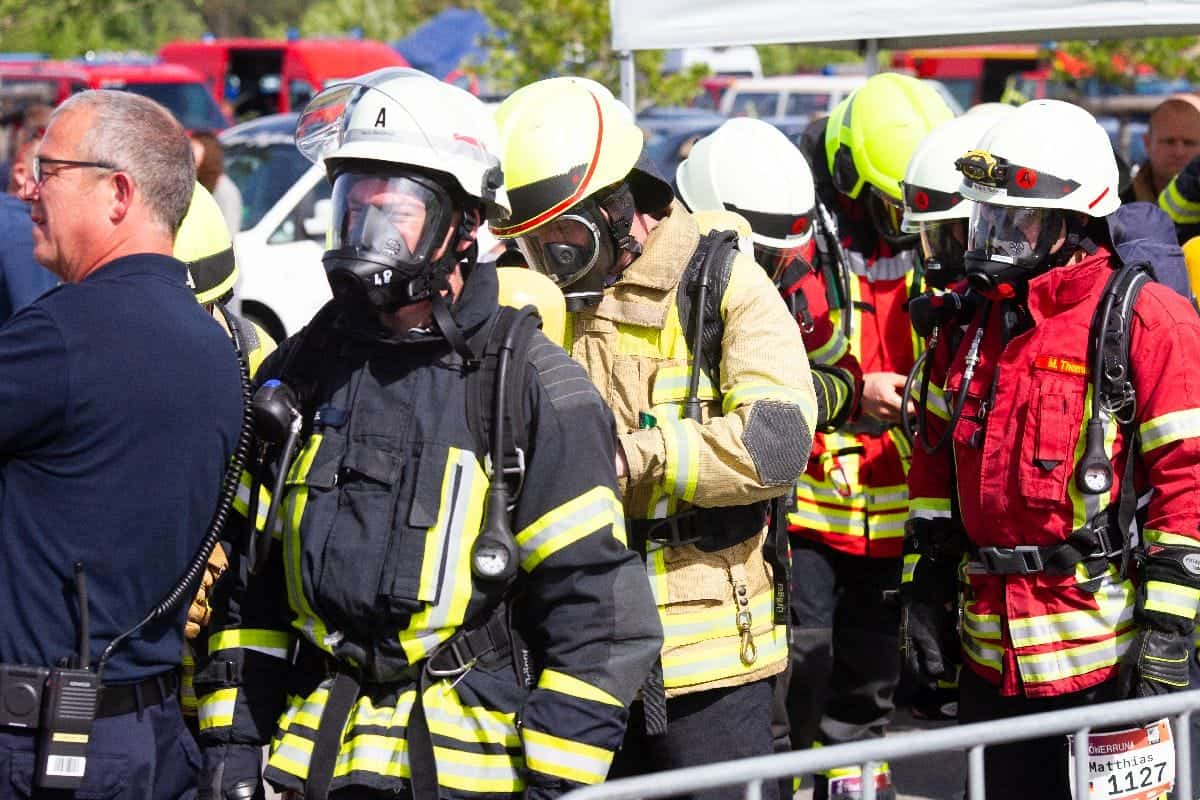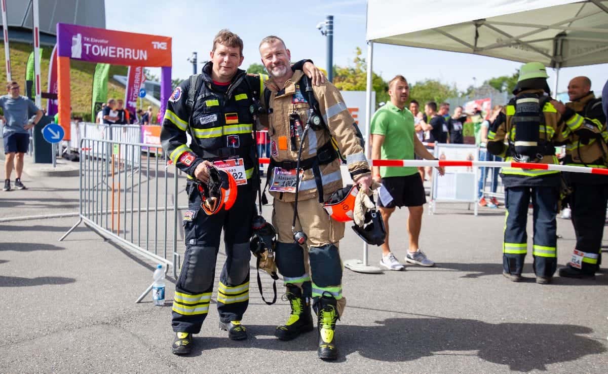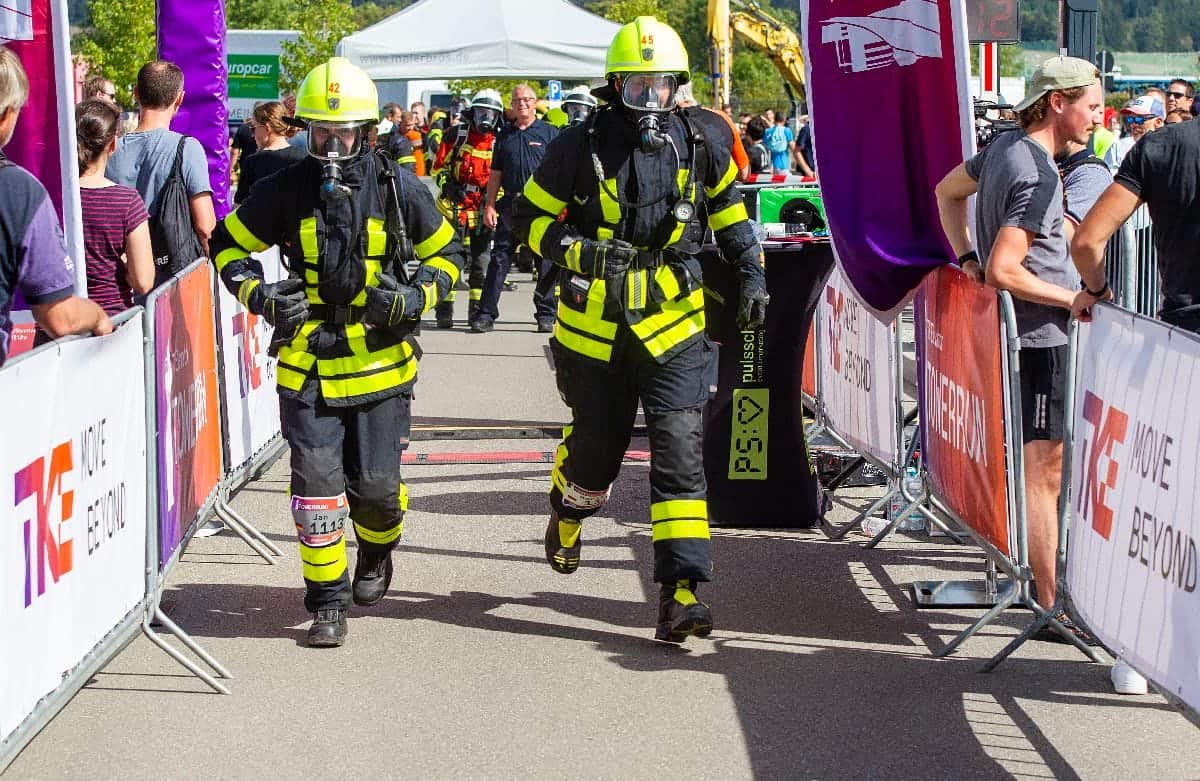Neben den „zivilen“ Läuferinnen und Läufern rüsteten sich auch zahlreiche Feuerwehrleute für die Herausforderung. Etwas weniger als die Hälfte der Starter im Testturm nahmen an den Feuerwehr-Wettbewerben teil. Die uniformierten Retter konnten den TK Elevator Testturm jeweils als Zweierteam bezwingen – die meisten davon mit angeschlossenen Atemschutzgeräten und einem Gesamtgewicht an Ausrüstung von rund 25 Kilogramm. Die mit Abstand anstrengendste Form, um an diesem Tag den „Gipfel“ in 232 Metern Höhe zu erreichen, ergab auch ein imposantes Bild für die Zuschauer, die zur vierten Auflage kamen.