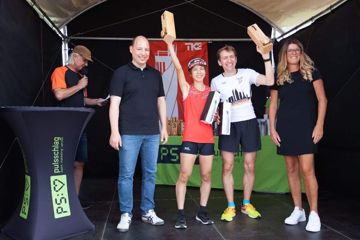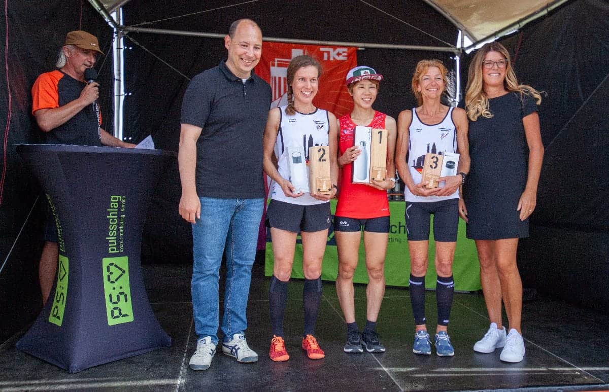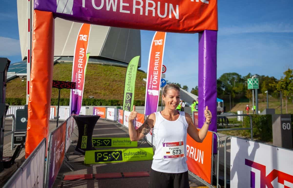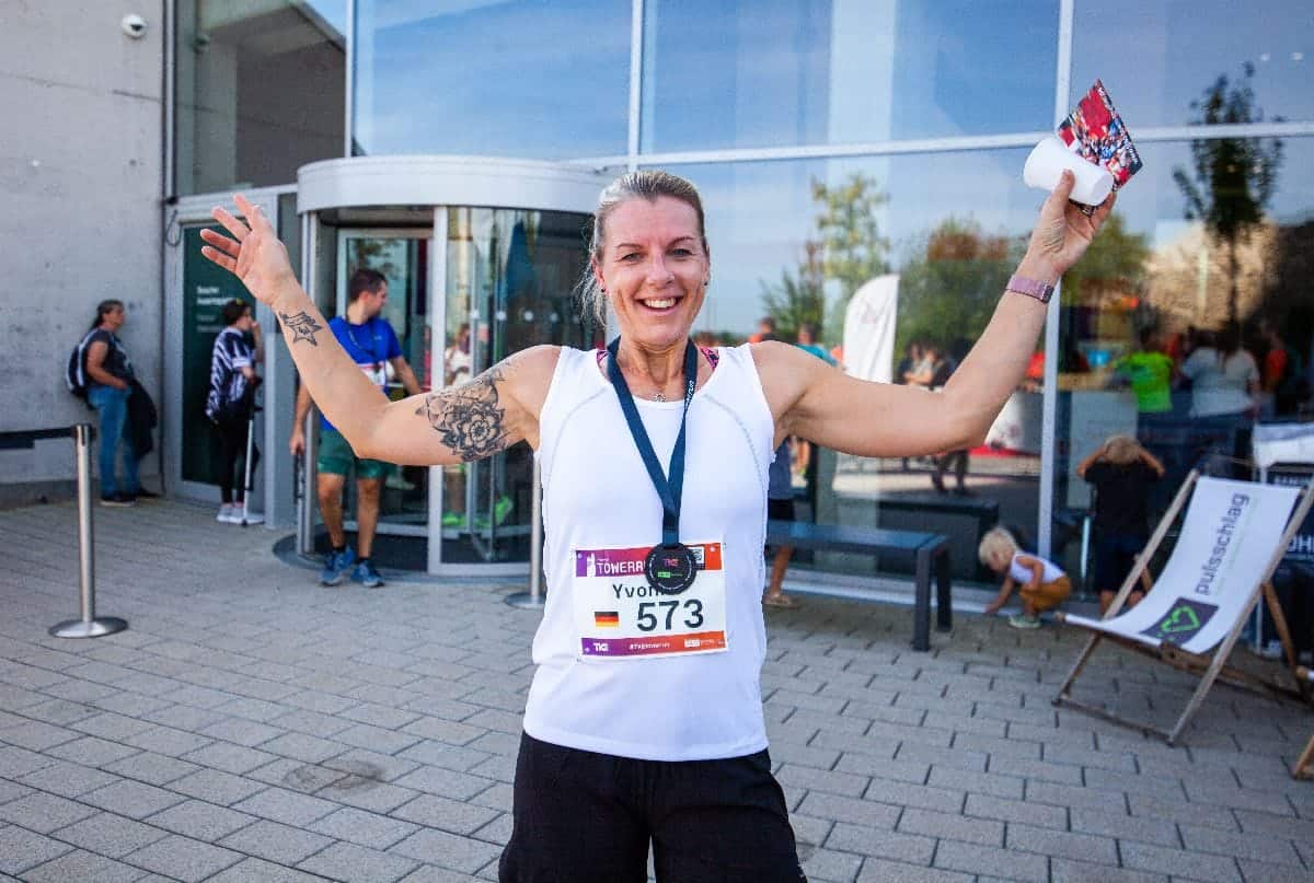 Den Sieg in der Frauenkonkurrenz erkletterte sich die Japanerin Tateishi Yuko in der neuen Testturm-Bestzeit von 9:08 Minuten und schnappte sich in 232 Metern Höhe den Streckenrekord (9:28 Min.) der Deutschen Meisterin Verena Schmitz. Die Vorjahressiegerin aus Konstanz benötigte für die 1.390 Stufen 9:28 Minuten und verwies ihre Teamkollegin Monica Carl (Towerrunniung Germany / 9:43 Min.) auf den dritten Rang.