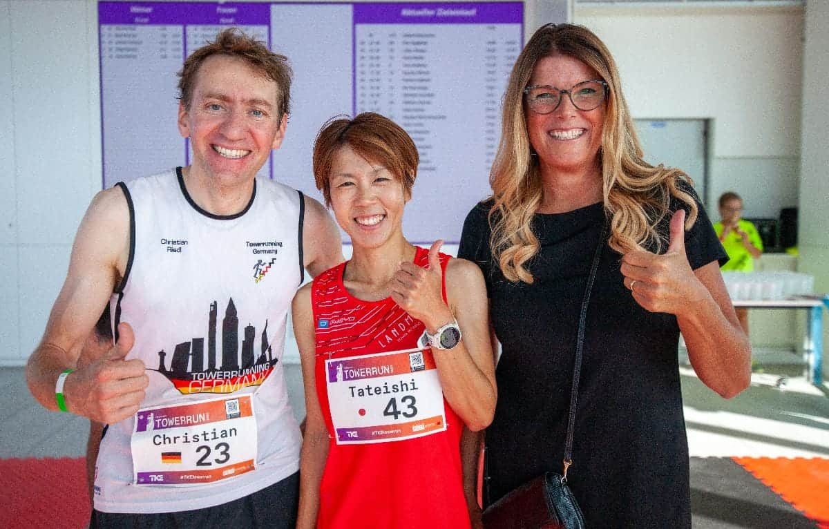 (Rottweil). 1390 Stufen ging es für die Läuferinnen und Läufer hinauf in 232 Metern Höhe. Tateishi Yuko aus Japan hat am Sonntag, beim vierten TK Elevator Towerrun, einen neuen Streckenrekord in der Frauen-Wertung aufgestellt. In 9:08 Minuten rannte sie dem Veranstalter zufolge die 1390 Stufen des Aufzugtestturms hinauf. Titelverteidigerin Verena Schmitz (Towerrunning Germany e.V.) wurde Zweite – in 9:21 Mimuten. Bei den Männern gewann erneut Christian Riedl aus Erlangen. Der Vorjahressieger und Streckenrekordhalter schaffte die Strecke in 7:08 Minuten.