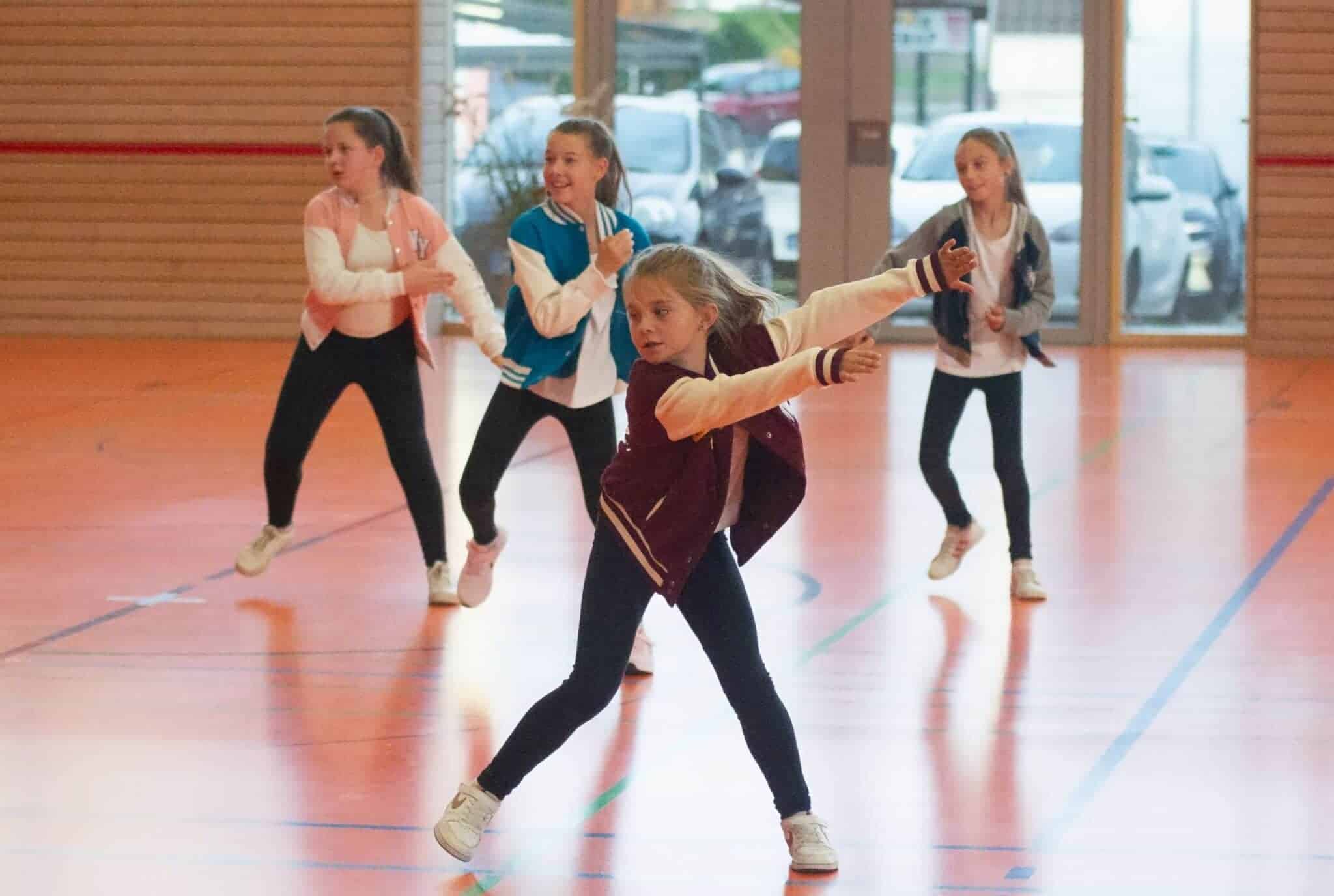 Nach dem musikalischen Einmarsch der Gruppen und der Begrüßung durch Marina Häsler (Vorstandsmitglied TSV Dunningen) konnten die Akteure zeigen, was sie gelernt hatten. Elke Dürr (Arbeitskreisvorsitzende Dance im Schwäbischen Turnerbund) übernahm die Moderation der Veranstaltung. Sie informierte das Publikum über die einzelnen Gruppen und deren Aufführung. Nach gekonnter Darbietung bat sie die Teilnehmer zum Kurzinterview.