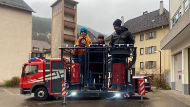 Tatü, Tata, mit Blaulicht und Sirene kurz ins Bernecktal – das und der Aufstieg mit der Drehleiter auf 30 Meter…