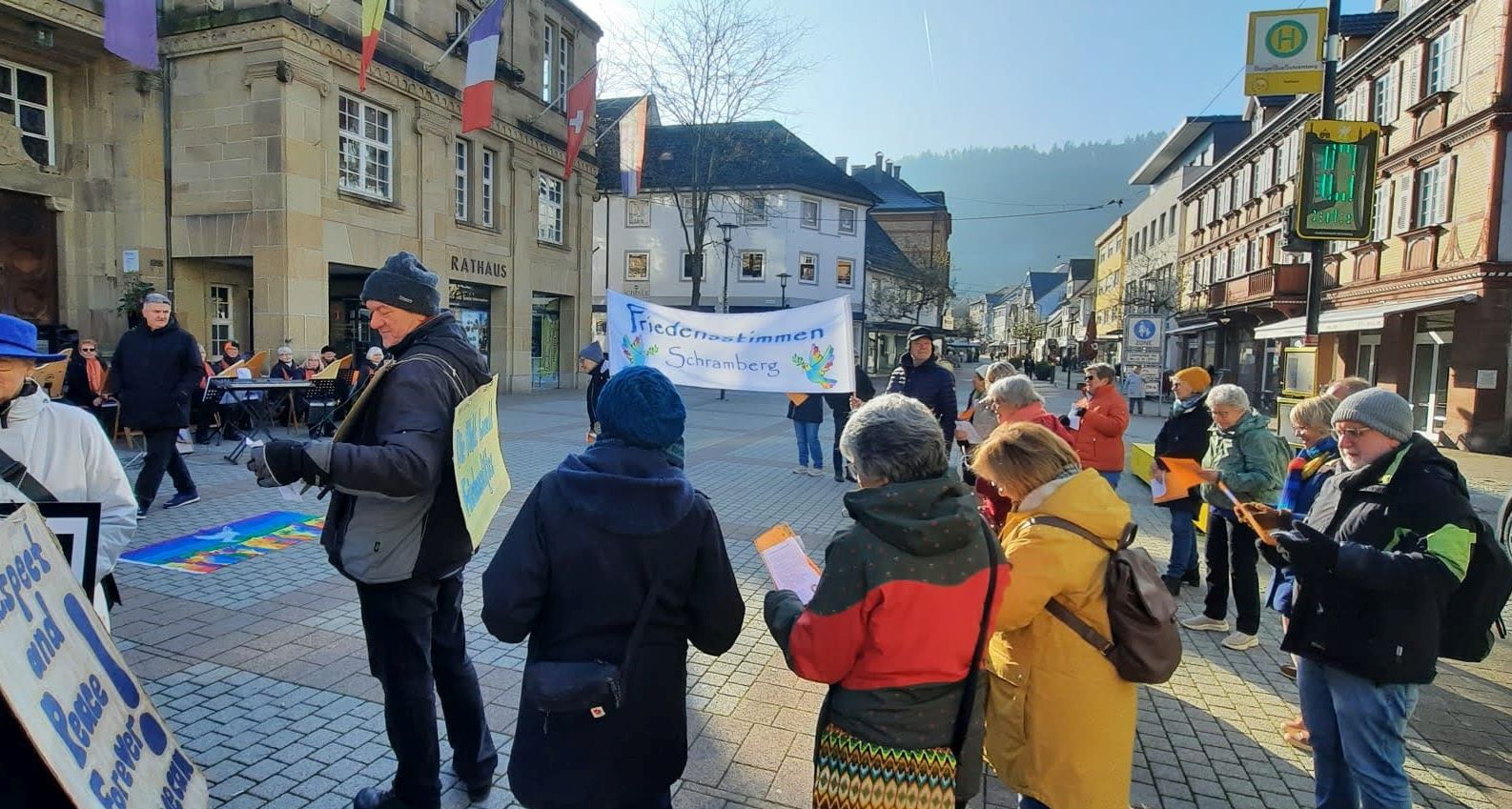 Am Samstag, 15. November 2025, lädt die Bürgerinitiative Friedensstimmen Schramberg um 11 Uhr zum öffentlichen Friedenslieder-Singen auf den Rathausplatz ein.