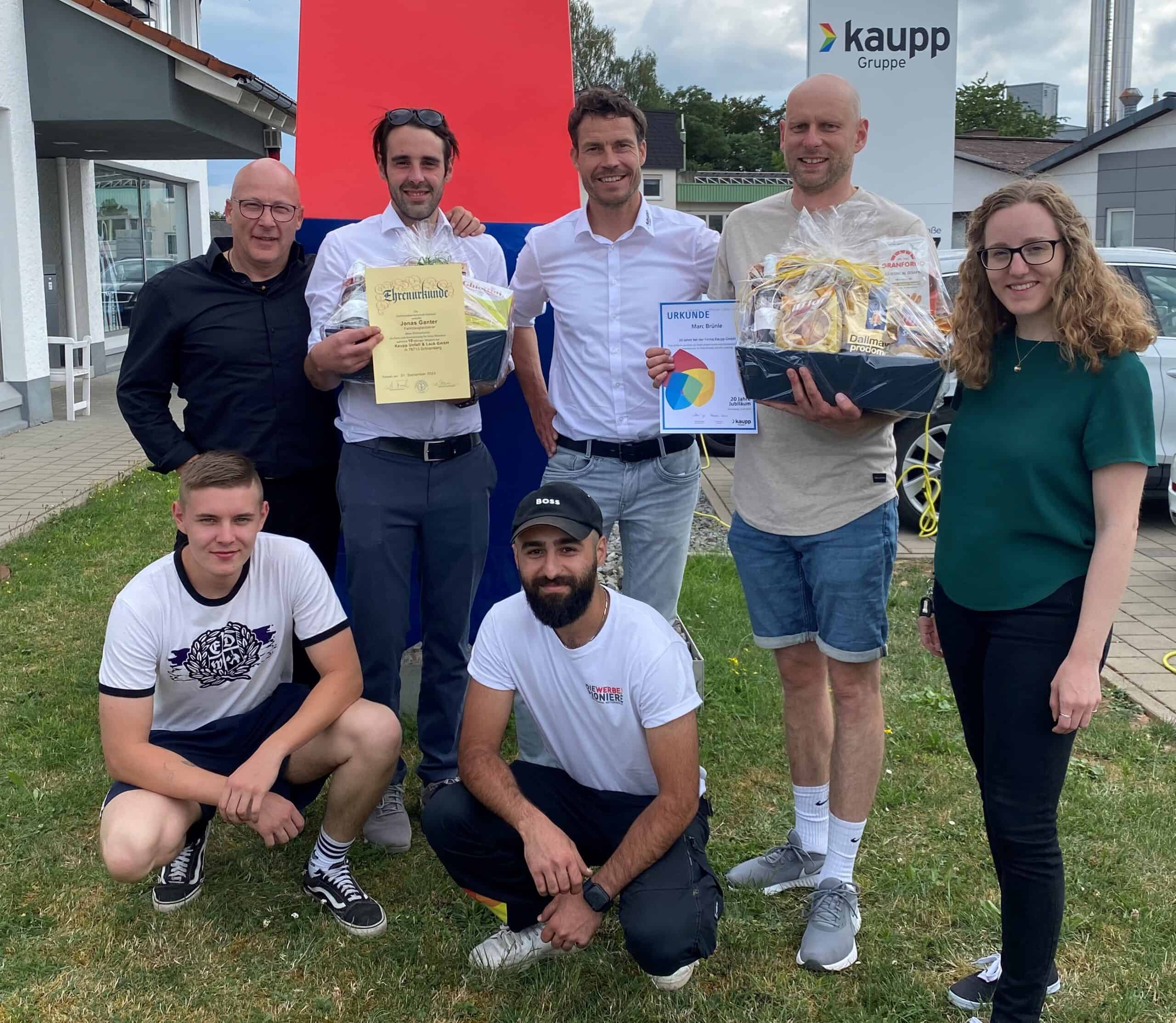 Derzeit bildet die Kaupp Gruppe insgesamt zehn Auszubildende in den Bereichen Industriekauffrau/mann, Karosserie- und Fahrzeugbaumechaniker/in, Fahrzeuglackierer/in, Mediengestalter/in und Schilder- und Lichtreklamehersteller/in aus. Drei davon beginnen Ihre Ausbildung im Herbst. Insgesamt beschäftigt die Kaupp Gruppe 120 Mitarbeitende und wächst weiter. Entsprechend engagiert sich die Firma Kaupp, begeisterungsfähige junge Menschen und Facharbeiter für einen Handwerksberuf zu finden und freut sich über Bewerbungen.