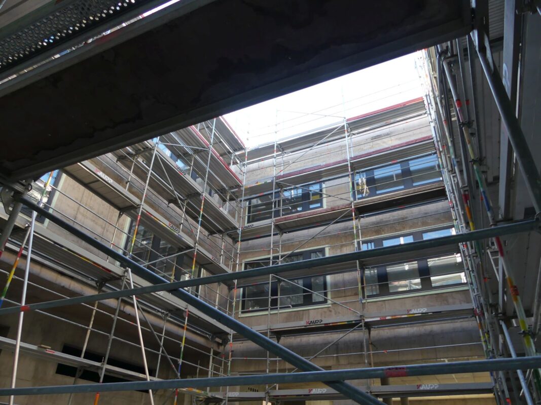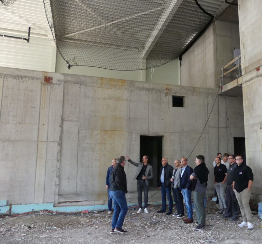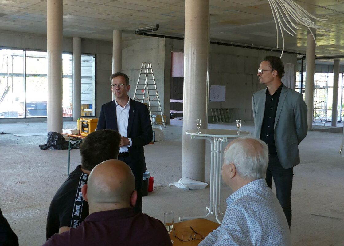 Bei einem Rundgang über die Rohbaustelle erläuterte Maurer die verschiedenen Bereiche und welche Möglichkeiten das Gebäude bietet.