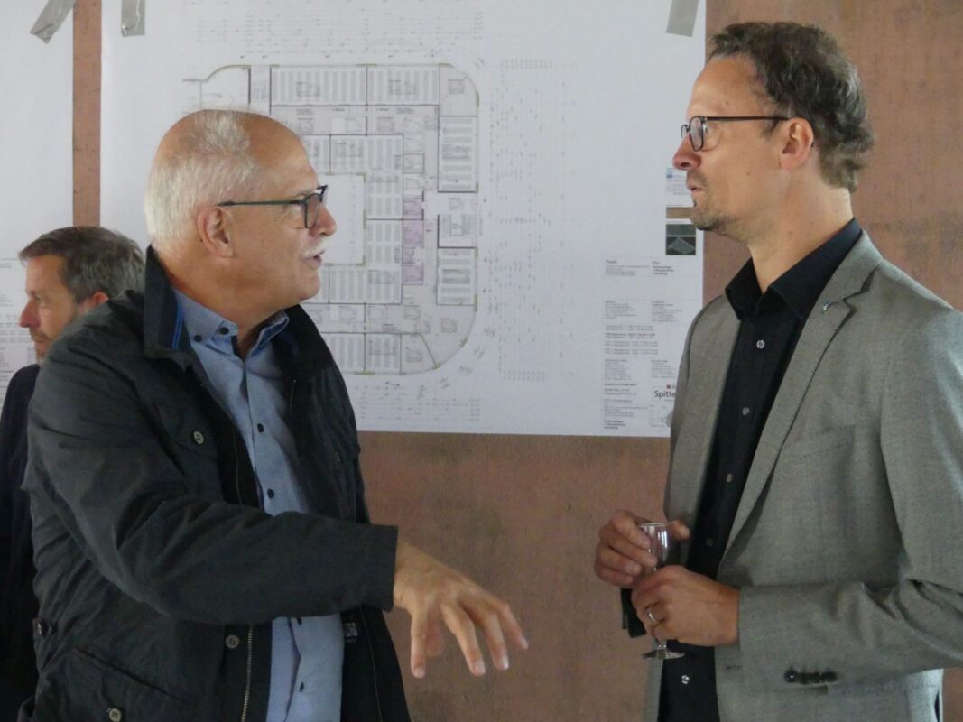 Auch er freute sich, dass man komplett im Zeit- und Kostenplan liege. Der „Traum auf dem Papier“ nehme nun „Stück für Stück Gestalt an“, so Maurer. Im vergangenen Oktober habe die Firma Bantle 7000 Kubikmeter Erdboden bewegt. Für den Rohbau seien 4000 Kubikmeter Beton verbaut worden. Weitere 425 Tonnen Stahl kamen als Bewehrungsstahl in decken, Wände und Stützen hinzu. Maurer bedankte sich bei den Nachbarn für ihr Verständnis: „Ein solcher Bau geht nicht ohne Geräusche, Verkehr und Dreck.“