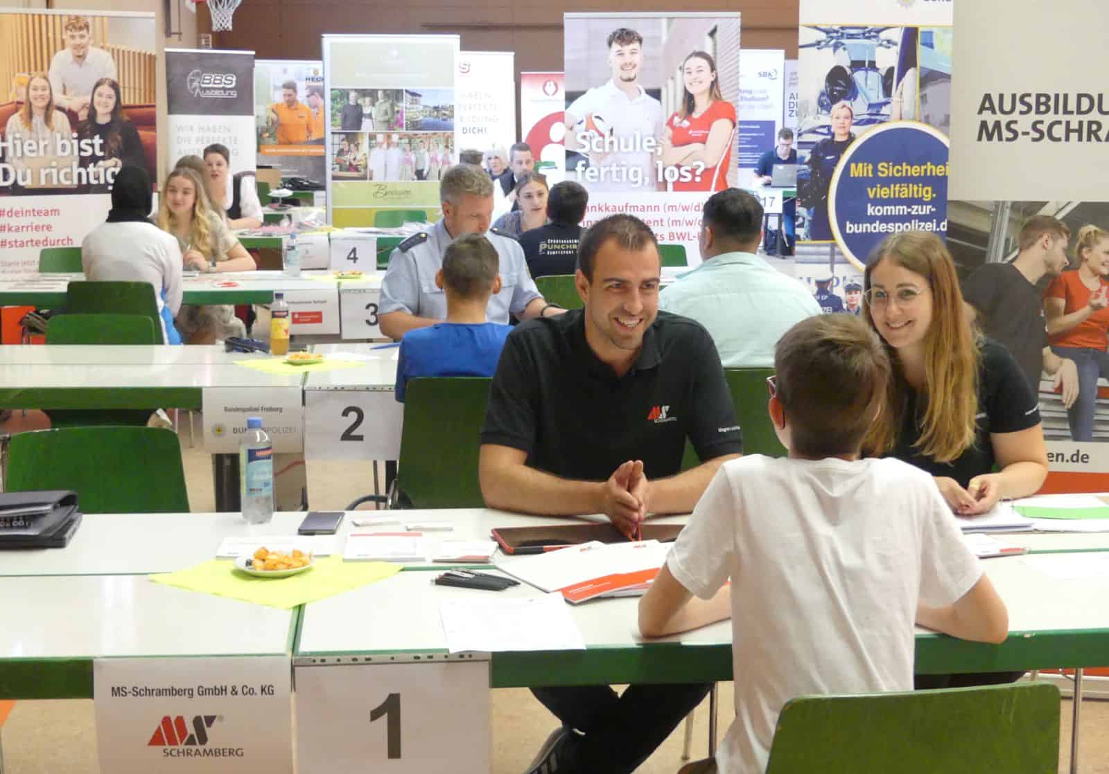 40 Firmen und Institutionen – vom Hotel Bareis in Baiersbronn bis zur Bundespolizei, von MS Schramberg bis Albrecht Werbetechnik – waren mit einfachen Ständen vertreten. Oberbürgermeisterin Dorothee Eisenlohr begrüßte um 8.30 Uhr die Vertreterinnen und Vertreter der Unternehmen. Mehr als 200 Schülerinnen und Schüler hätten sich angemeldet und 551 Gespräche schon gebucht.